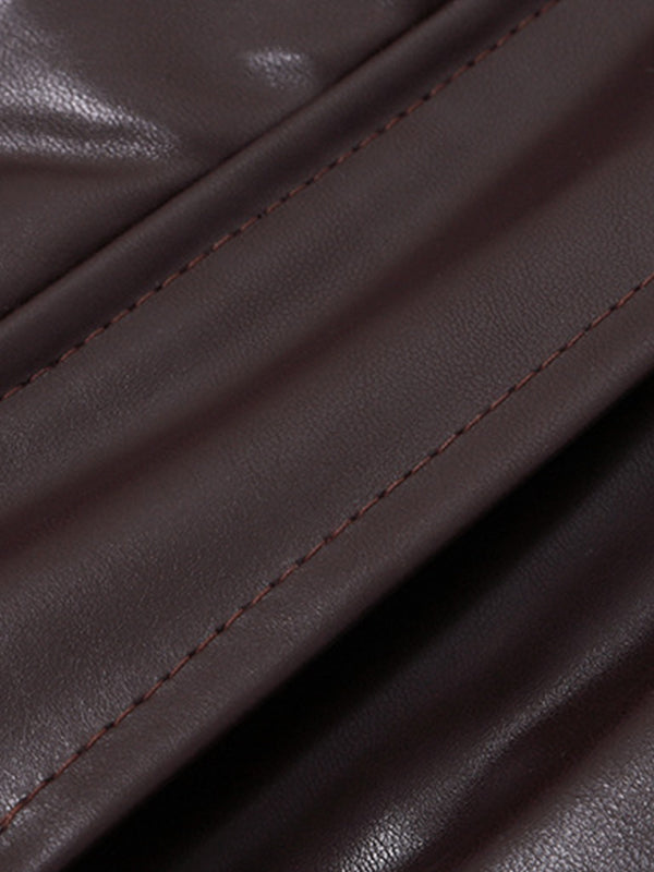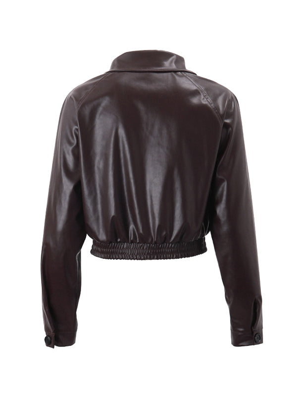 Vintage Brown Lapel Neck Zip Up Short Jacket